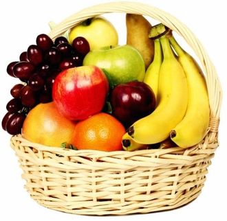 Состав: груши, бананы, апельсин, грейпфрут, яблоко зелёное, яблоко красное, виноград красный, слива.