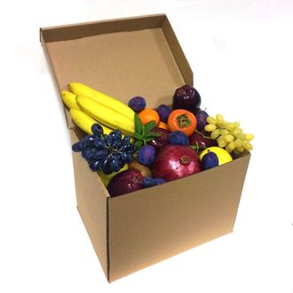 Состав: Мандарины, Апельсины, Киви, Бананы, Яблоки красные, Яблоки зеленые, Виноград черный, Виноград зеленый, Хурма, слива, гранат
