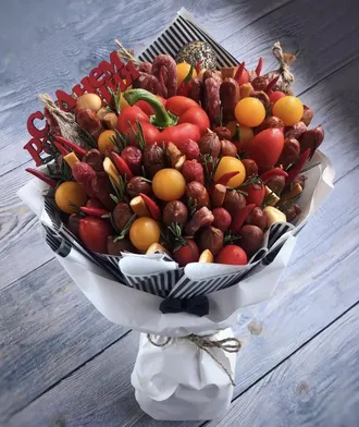 охотничьи колбаски, сыр чечил, перцы чили, перец болгарский, розмарин, сервелат